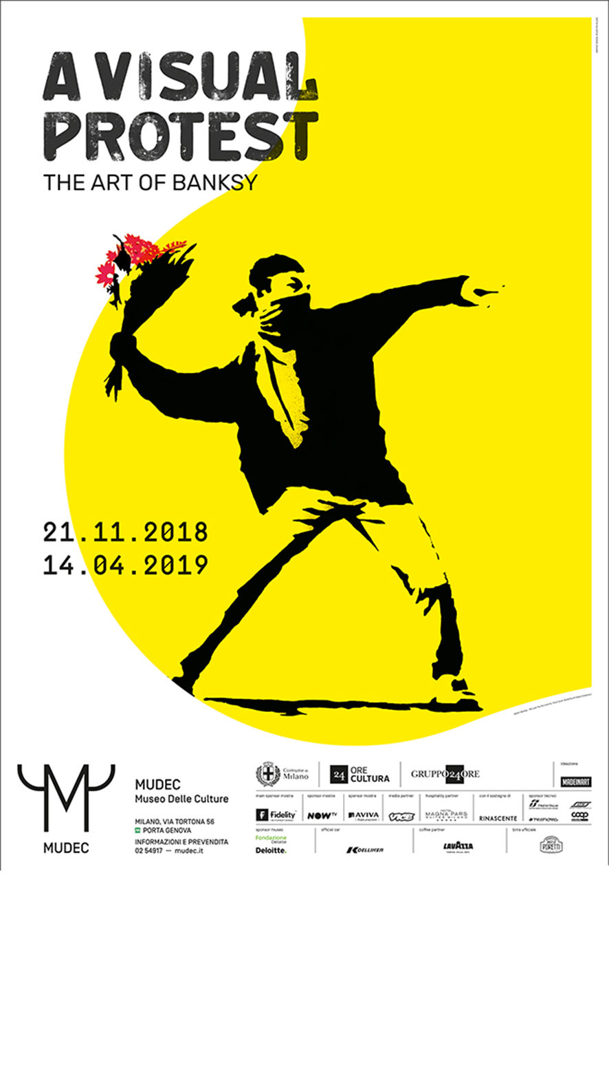 Banksy è uno degli artisti più famosi e controversi del panorama contemporaneo. La sua strategia del voler lavorare nell’ombra e non rivelare la propria identità anagrafica è una condizione necessaria e irrinunciabile per sfuggire a ogni tipo di controllo: sull’invisibilità Banksy ha costruito la sua popolarità. Noto soprattutto per i dipinti su strada, Banksy ha utilizzato diverse modalità per sviluppare la sua concezione dell’arte come protesta e disubbidienza al sistema. Nei soggetti dei murales, nei dipinti e nelle stampe l’artista inserisce sempre una nota apparentemente incongrua e spiazzante. Riesce così a catturare e calamitare l’attenzione e a indurci a osservare in maniera più approfondita ciò che abbiamo di fronte per comprenderne il significato. Ciò che conta per Banksy, in definitiva, non è tanto la forma quanto il messaggio; nonostante ciò, è riuscito a creare, a livello formale, un linguaggio personale immediatamente riconoscibile e multiculturale, grazie soprattutto all’impiego della tecnica dello stencil.